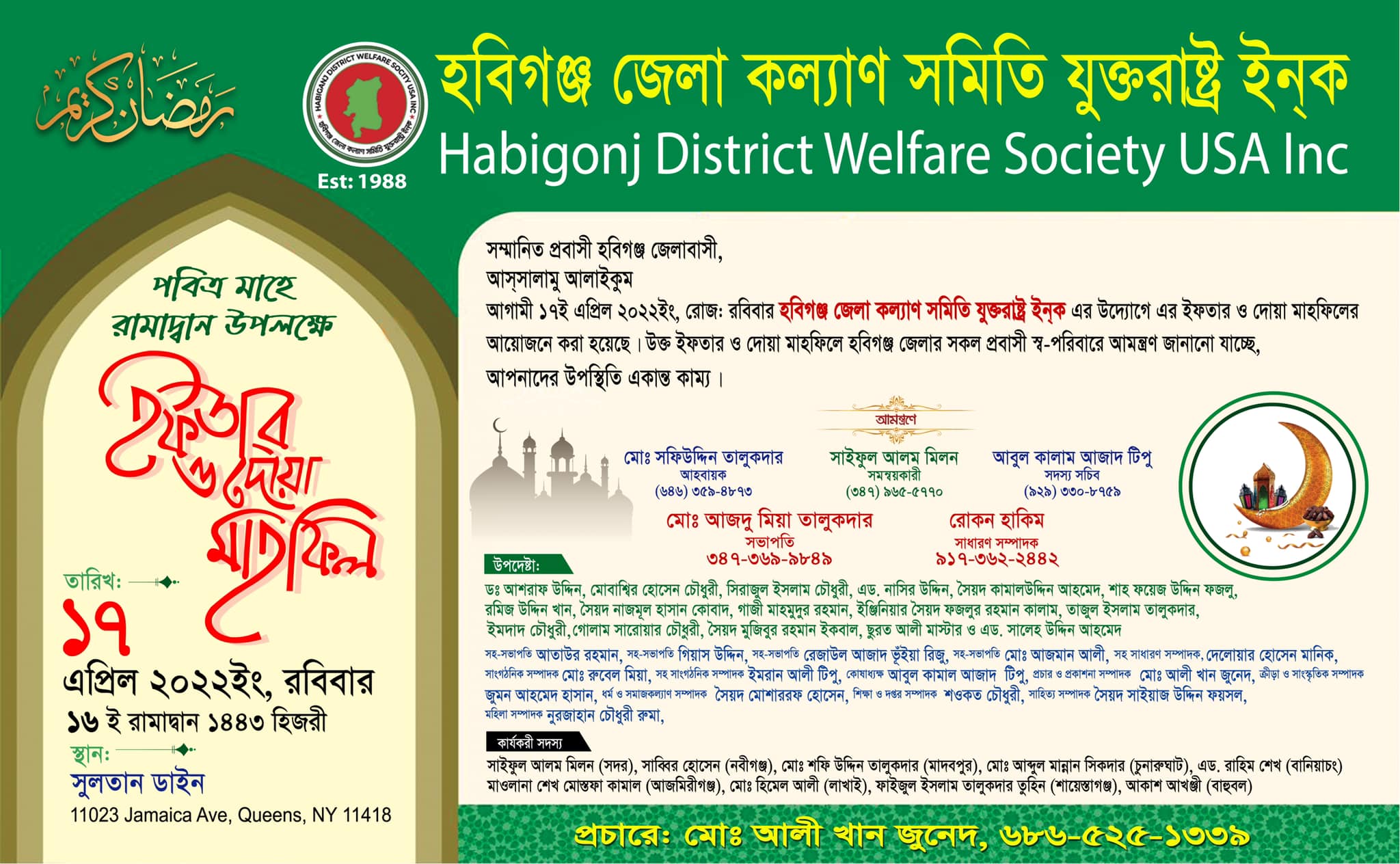 হবিগঞ্জ জেলা কল্যাণ সমিতির ইফতার মাহফিল ১৭ই এপ্রিল